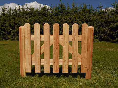 Sie sind identisch mit Zäunen aus Lärchen und mit Metallteilen aus Edelstahl.